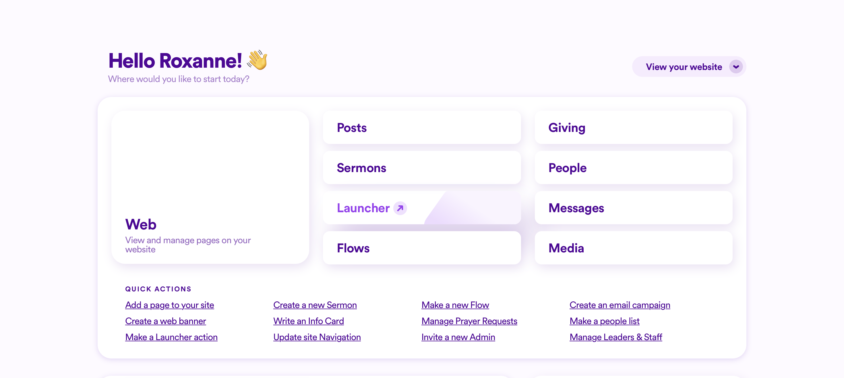 The Launcher is a powerful tool that can be installed on virtually any website. The Launcher can house all your most important next steps that people can take 7 days of the week, rather than having to wait until your next church service.