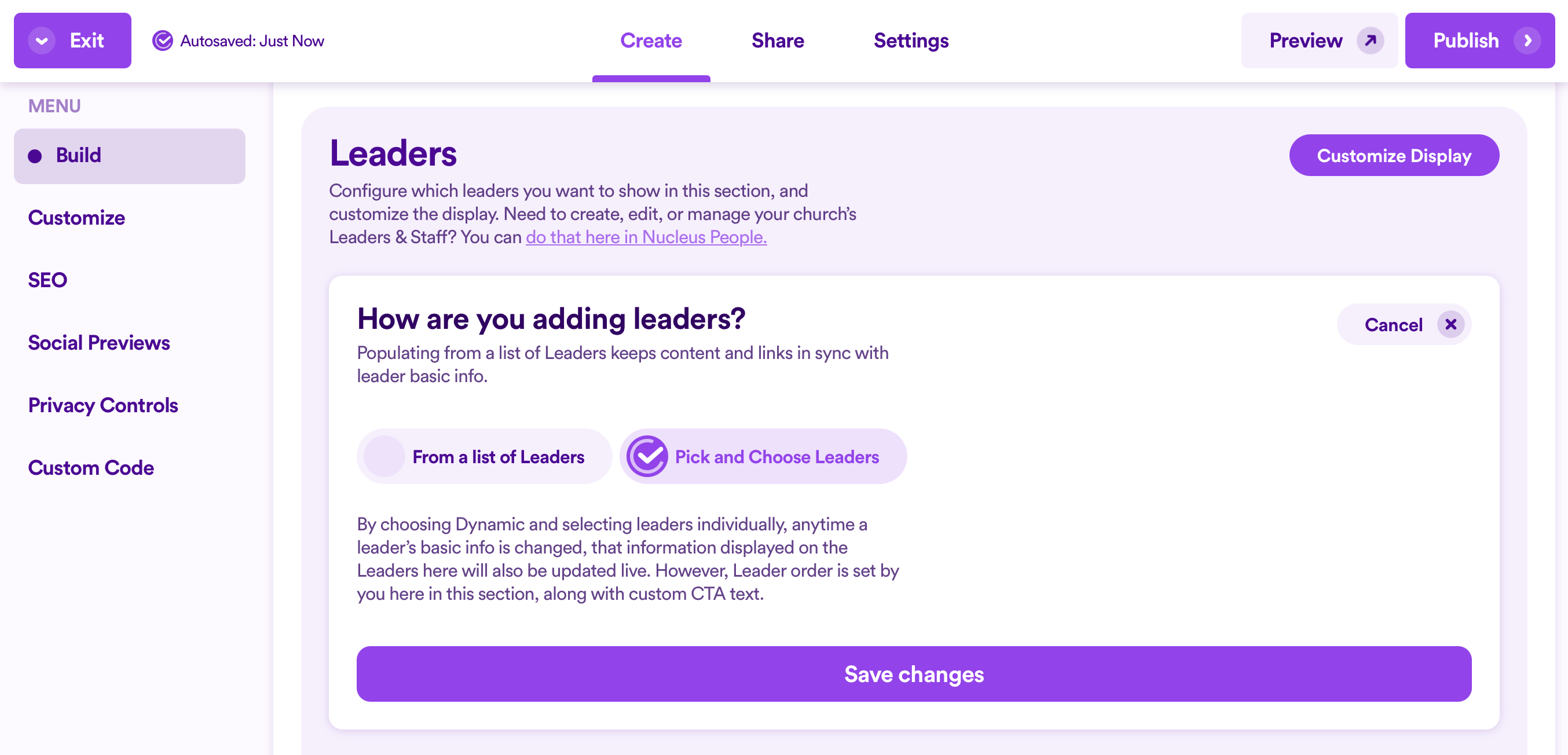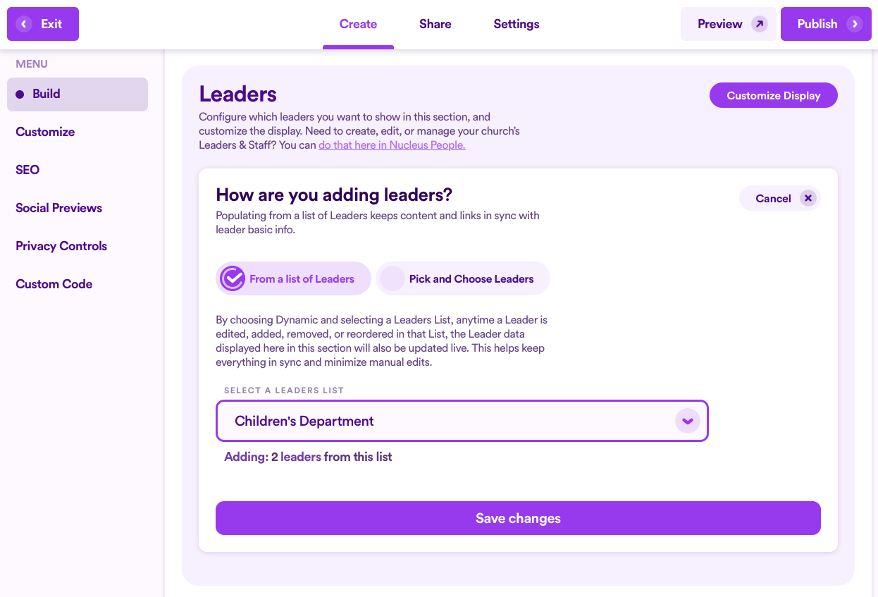 Now that you have all the people you wish to display, you can now edit how the cards are displayed in your section by clicking Customize Display.