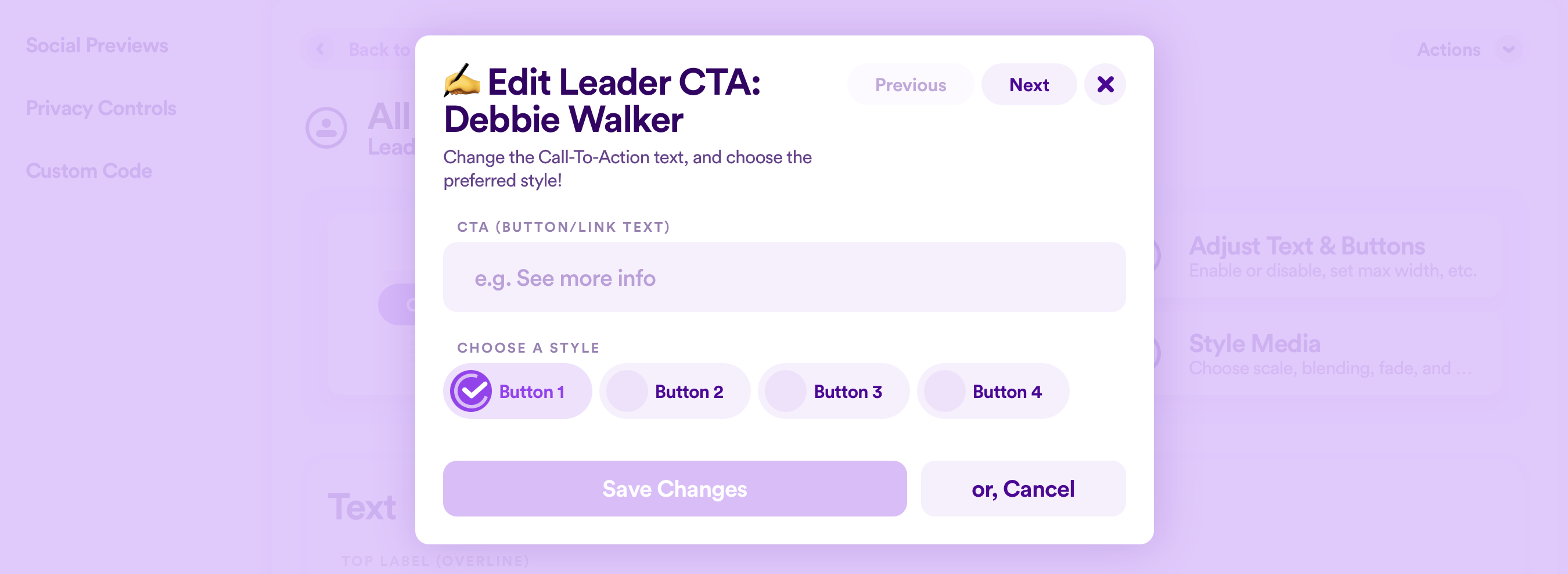 Next, edit the call-to-action (CTA) text, and select one of four button styles.