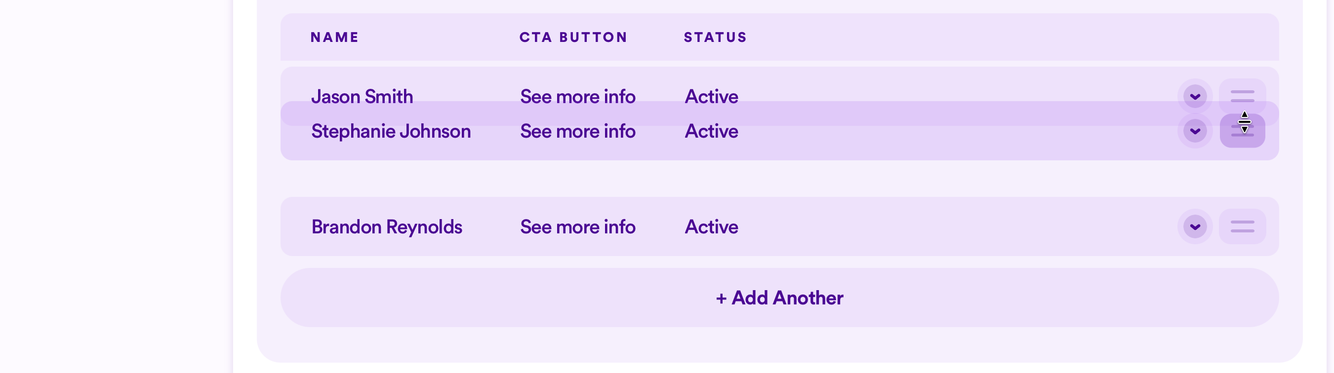 Now, you can rearrange the order of the leaders by clicking and holding the two lines on the far right, dragging it up/down, and releasing it in your desired order. You can also click to + Add Another person to your section.