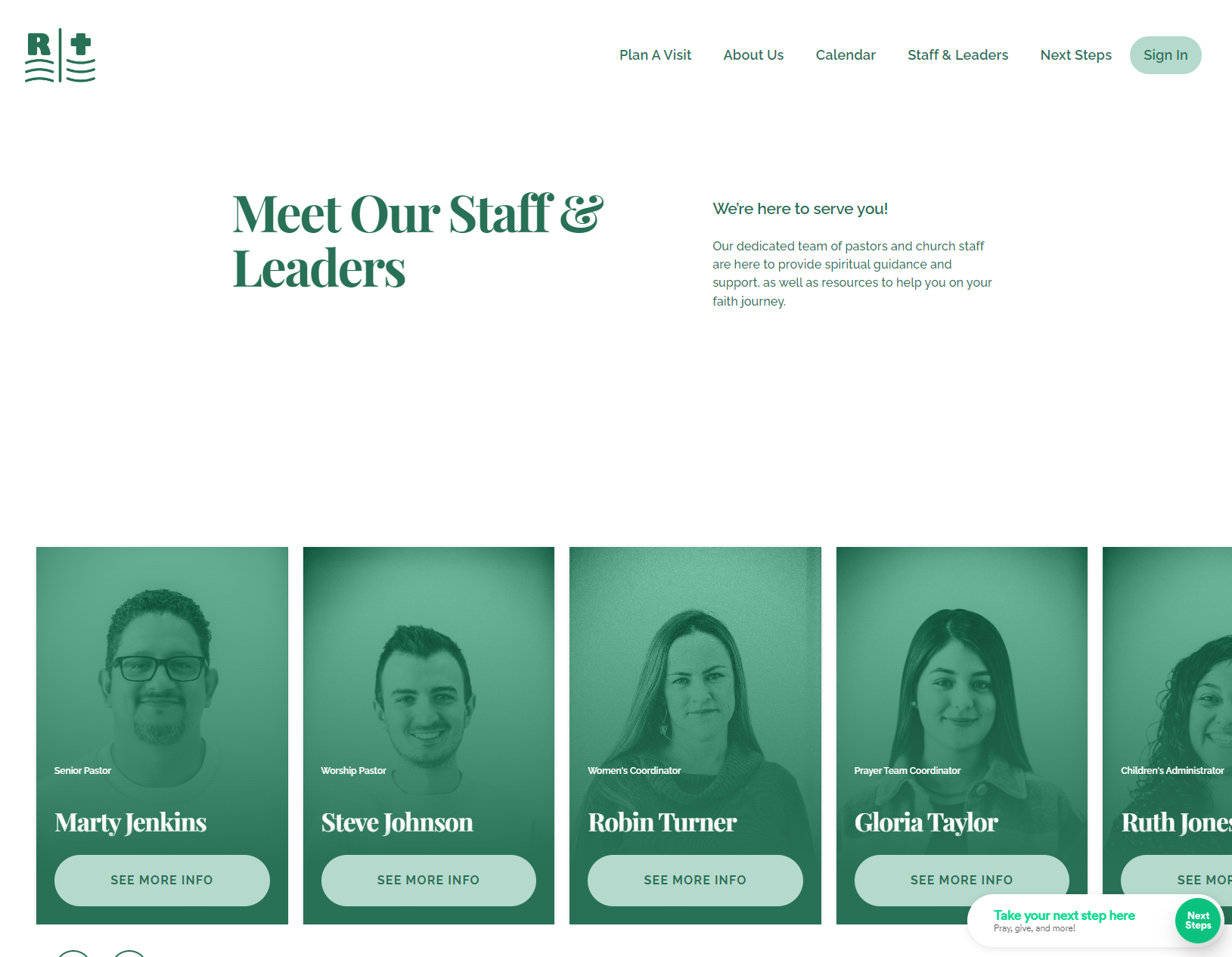 The Staff & Leaders section behaves and functions very similarly to the Cards section - both in how it displays on the front end and how you set it up in the Dashboard.