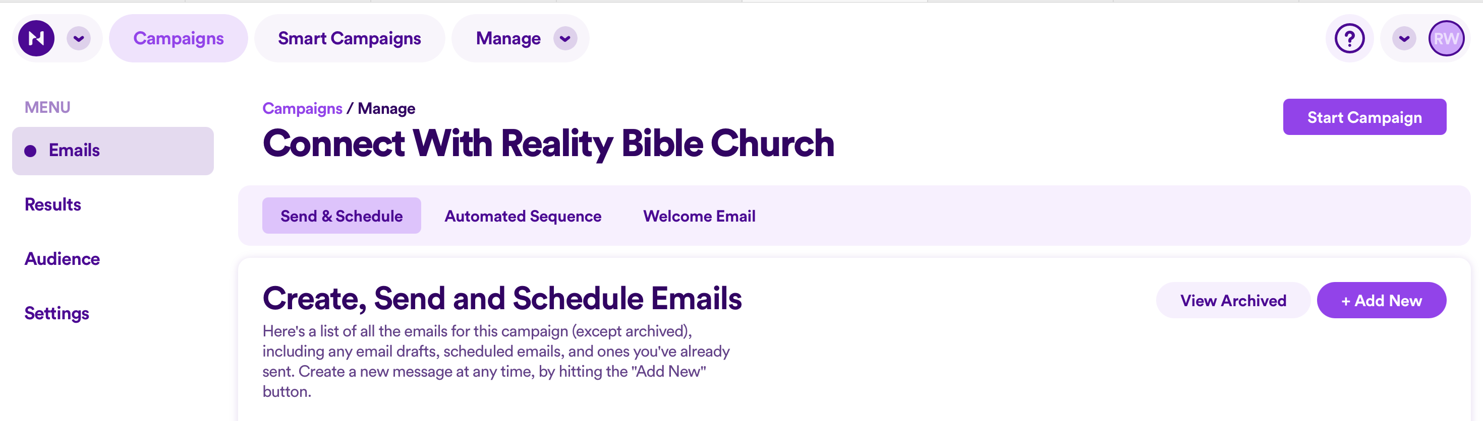 - A Welcome Email (an initial email to introduce someone to the Campaign)