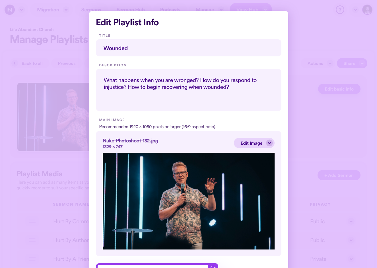 Creating playlists, and also adding speakers and topics to your sermons, is a fantastic way to categorize your sermons, making it easy to search for specific messages and navigate your Sermon Hub.